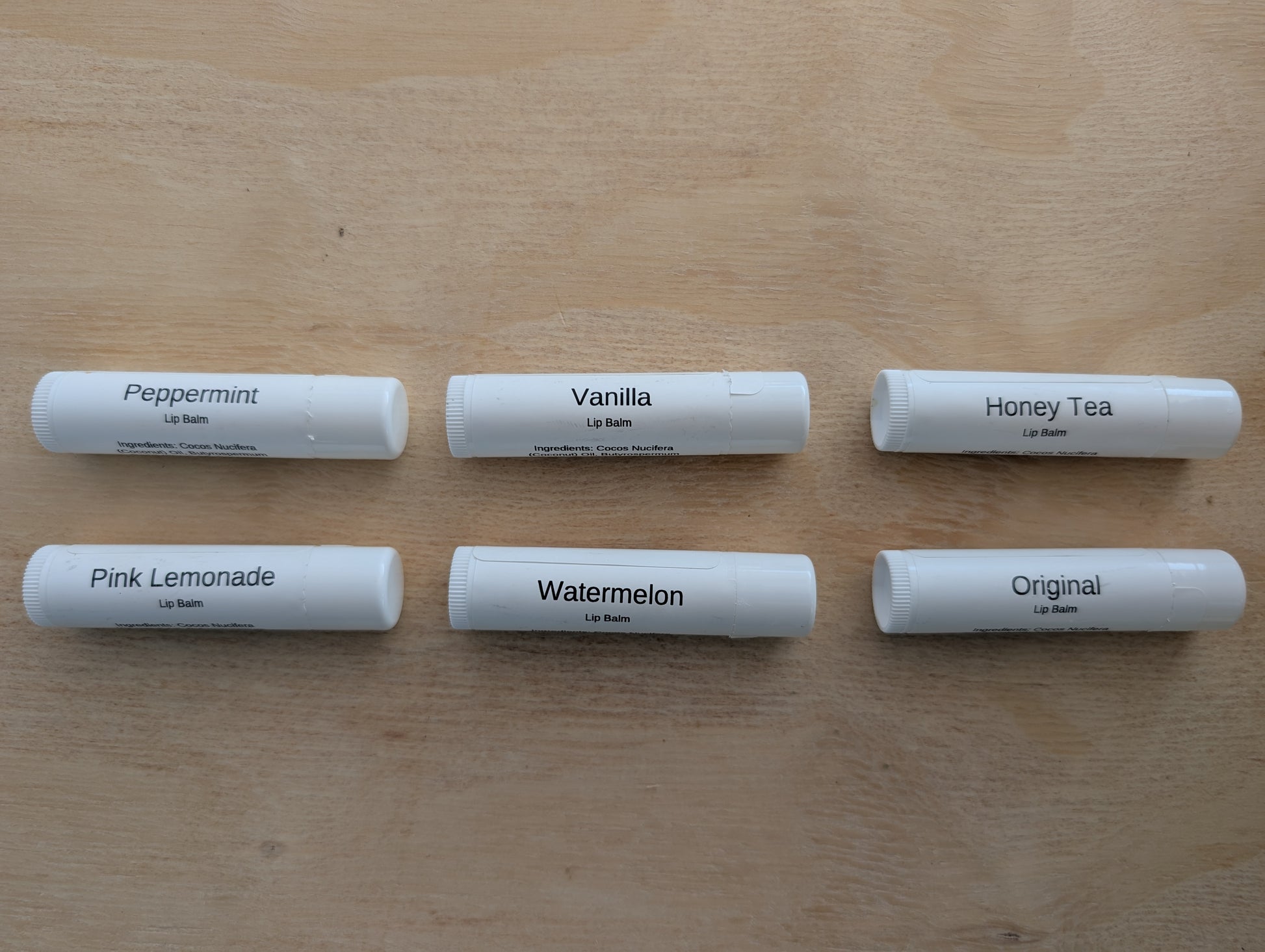 Ingredients: Cocos Nucifera (Coconut) Oil, Butyrospermum Parkii (Shea) Oil, Beeswax, Simmondsia Chinensis (Jojoba) Seed Oil, Ricinus Communis (Castor) Seed Oi, Flavor.